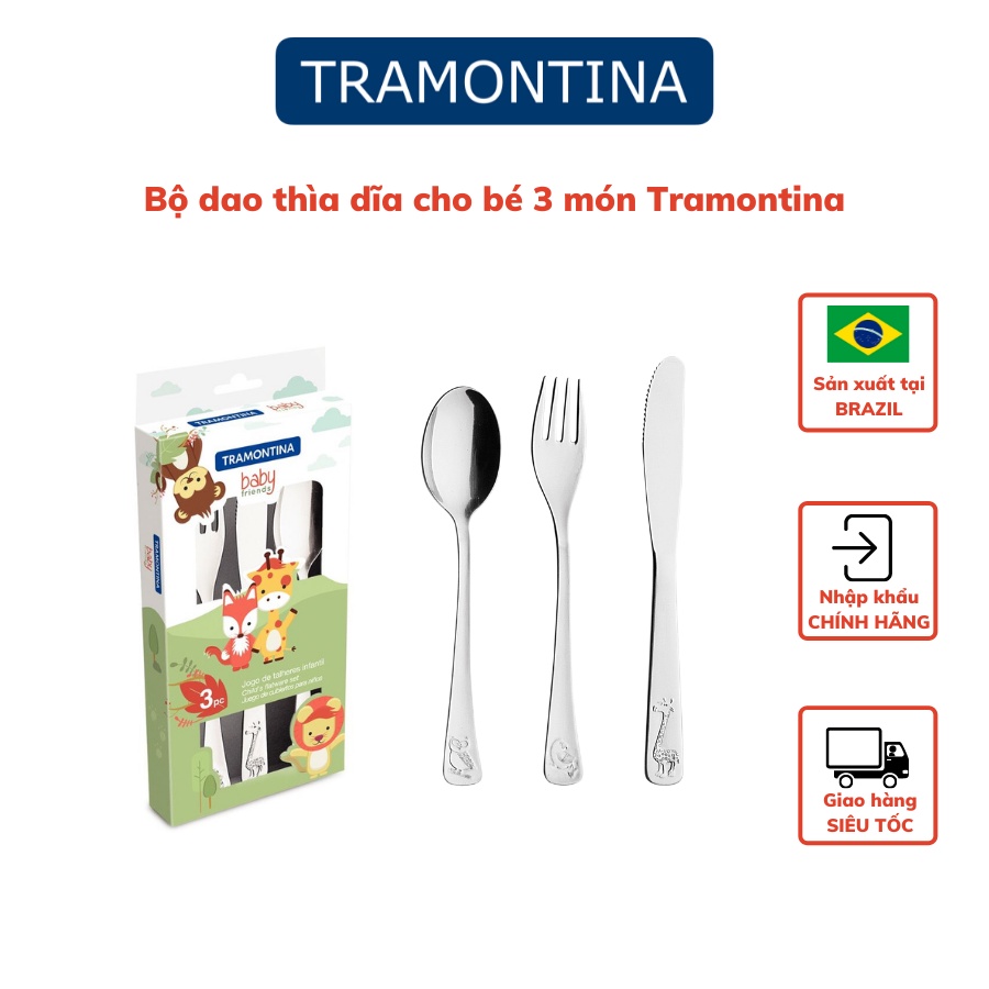 Bộ 3 chiếc dao thìa dĩa cho bé Tramontina thép không gỉ cao cấp hàng chính hãng nhập khẩu Brazil