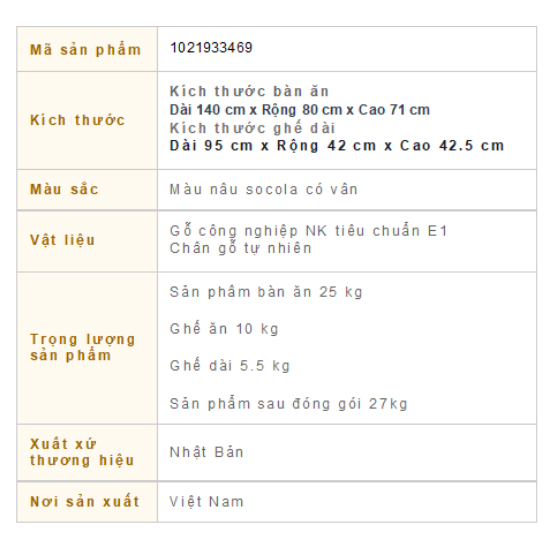 | Kích thước (Dài x Rộng x Cao) | 140 x 80 x 71 cm |