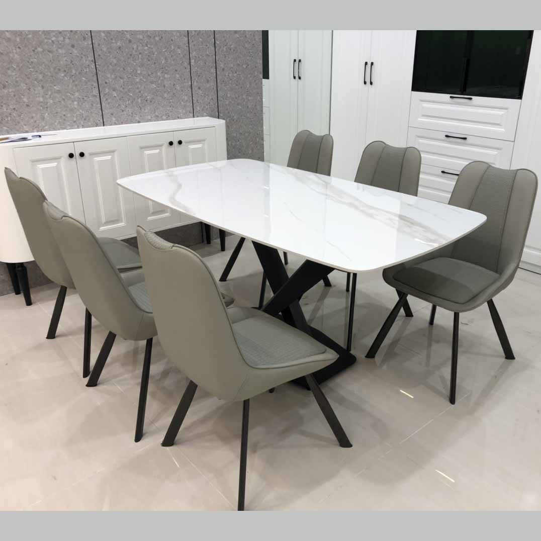 - Đi cùng với chiếc bàn ăn là những chiếc ghế hiện đại, thời trang mang đến vẻ đẹp thanh lịch cho phòng ăn của bạn. Với chất liệu da cao cấp, tạo sự thoải mái và êm dịu khi ngồi, cùng với đó là khả năng chịu lực tốt rất tiện ích và an toàn cho cả nhà.