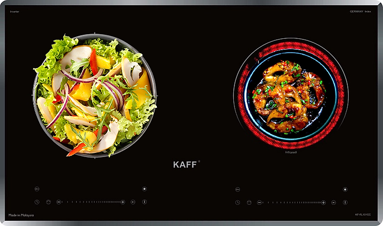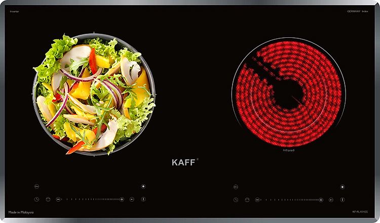 Bếp hồng ngoại đôi cảm ứng KAFF KF-FL101CC thuộc dòng bếp điện từ cao cấp của thương hiệu thiết bị nhà bếp nổi tiếng tại Đức KAFF, là sự kết hợp hoàn hảo giữa 2 bên bếp điện hồng ngoại không kén nồi và có thể nướng trực tiếp trên bề mặt bếp, Ở bếp hồng ngoại đôi cảm ứng KAFF KF-fFL01CC này bạn sẽ tìm thấy ba yếu tố nổi bật nhất của sản phẩm này là: Thiết kế hiện đại, hiệu suất đun nấu cao và an toàn tuyệt đối.