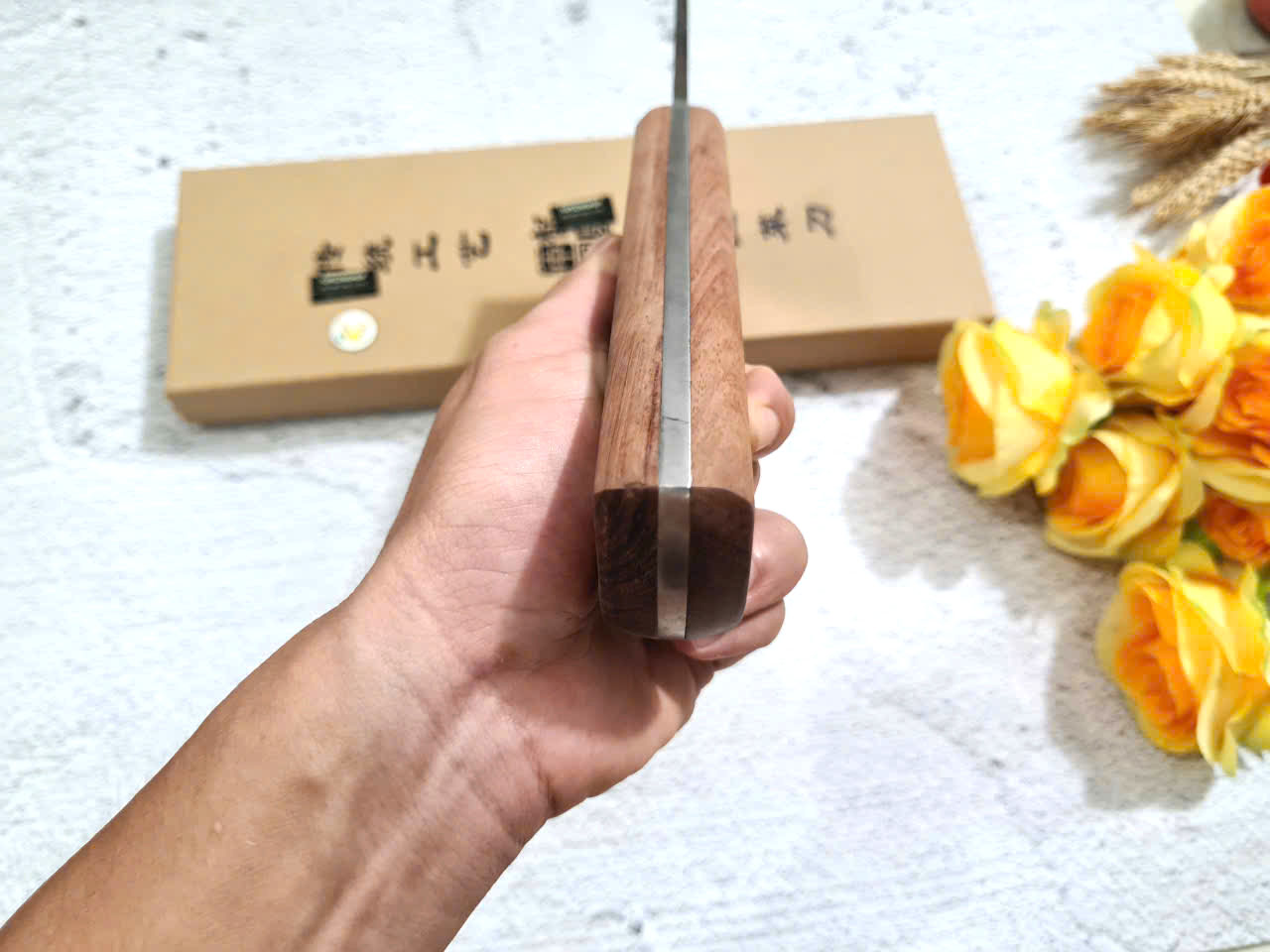 Cán chạm khắc gỗ cẩm lai. Các hoa văn được dập nổi vào mặt D nên không bao giờ mất