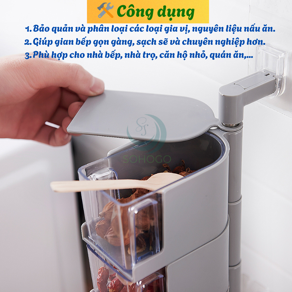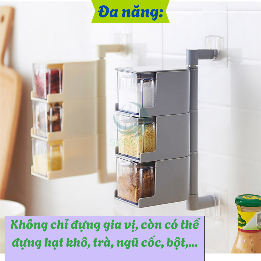Giới thiệu Hộp Gia Vị Treo Tường Xoay 360 Độ- Hộp Đựng Gia Vị Đa Năng Gắn Tường- Kệ Gia Vị Xoay Thông Minh 4 Ngăn- Hộp Đựng Thực Phẩm Mini Gắn Bếp- Hộp Đựng Gia Vị Dạng Kéo Gắn Đứng
