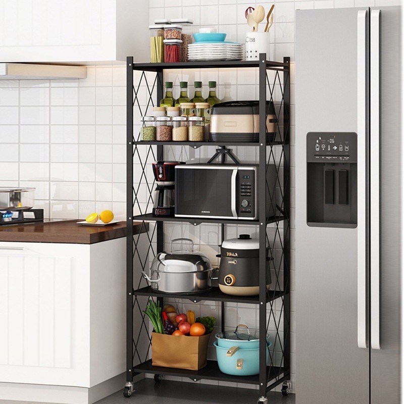 Giới thiệu Kệ đa năng gập gọn thông minh 3/4/5 tầng để đồ nhà bếp bằng thép carbon không gỉ kèm bánh xe tiện lợi