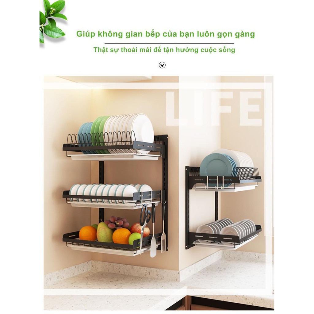Bộ sản phẩm đầy đủ gồm : Kệ, khay hứng nước, lồng đũa, khay để dao kéo, 3 móc treo đa năng, keo dán, ốc vít.