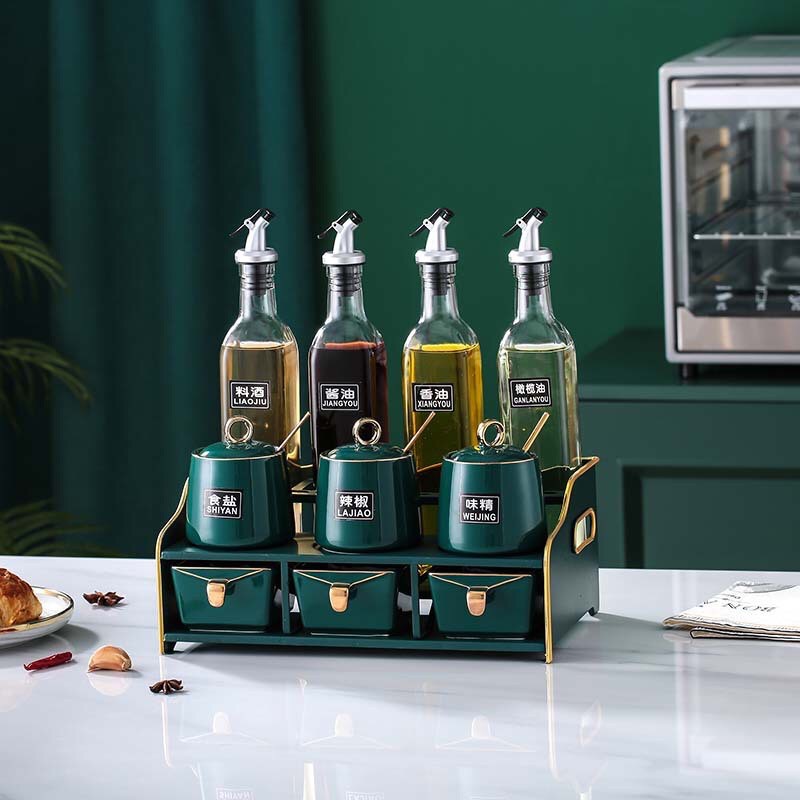 - bộ để gia vị theo combo có thể chọn bộ sứ hoặc thủy tinh tùy theo không gian phòng bếp được thiết kế phù hợp với loại nào hơn thì nên chọn loại đó.