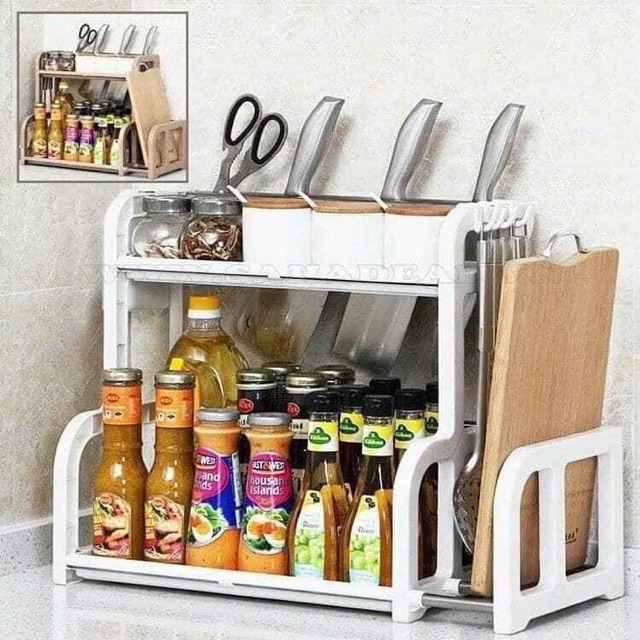 ✔️Kệ gia vị chữ H kèm khay đựng thớt (Có giá để thớt) làm từ chất liệu nhựa PP dùng cho thực phẩm cùng inox không gỉ, đảm bảo an toàn cho sức khỏe, không có chất độc hại; thiết kế hợp lý giúp để đồ thuận tiện, cho không gian nhà bếp luôn gọn gàng, ngăn nắp