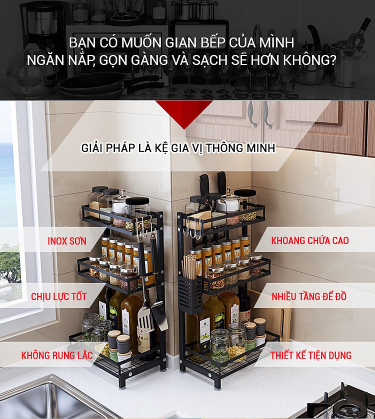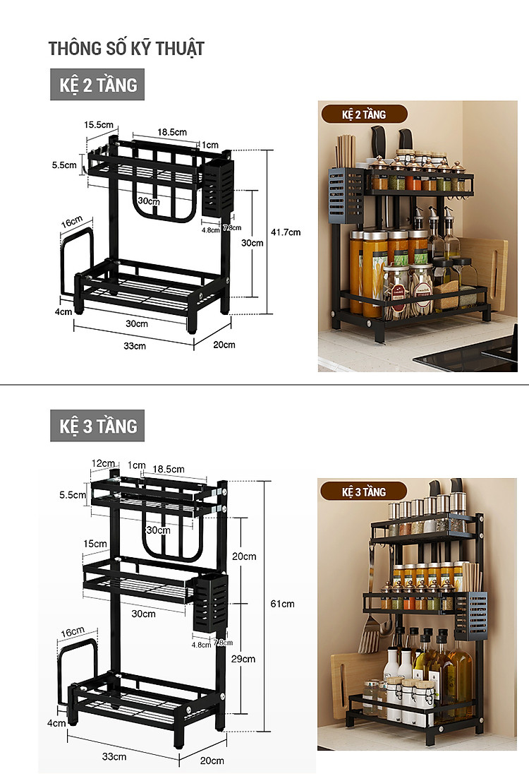 ️Kệ đựng gia vị có thiết kế 2,3 tầng tùy thuộc vào nhu cầu và sở thích mà bạn có thể lựa chọn cho phù hợp.