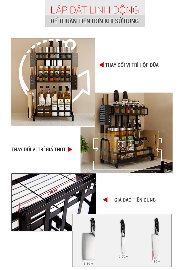 TÍNH NĂNG NỔI BẬT KỆ GIA VỊ 2-3 TẦNG LẮP GHÉP THÔNG MINH KALPEN