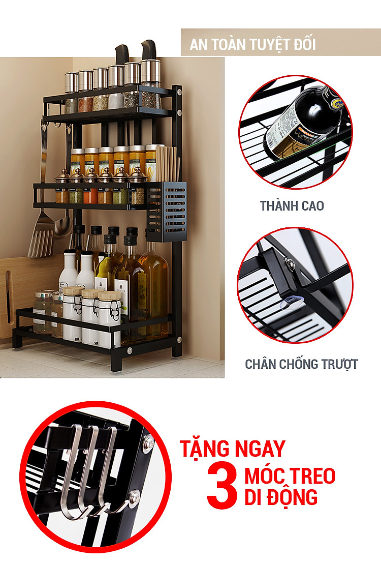 ️ Kích thước 3 tầng : 33x20x60 cm ( kèm giỏ đũa, khay dao, khay thớt ).tặng 3 móc treo