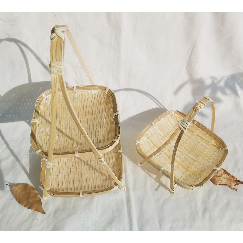 Mẹt tre tầng vuông được làm bằng chất liệu tre 100%, đường đan tỉ mỉ sắc xảo, dây buộc bằng sợi giang tự nhiên, không phải sợi nhựa. Phù hợp làm kệ trang trí món ăn trong nhà hàng, homestay, đựng trái cây và thực phẩm làm đẹp mắt cho không gian bếp và nhà ăn nhưng vẫn đảm bảo độ an toàn cho thực phẩm.