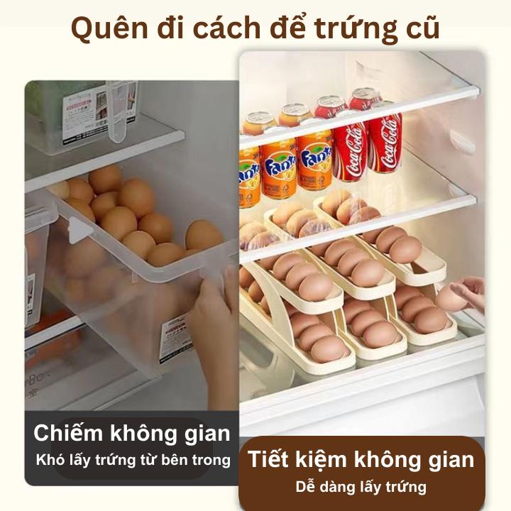 Khay Đựng Trứng Tủ Lạnh 2 Tầng Lăn Tự Động Tiết Kiệm Không Gian Tủ
