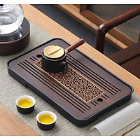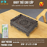 Bộ khay uống trà được làm bằng nhựa , phủ sơn vân gỗ .
