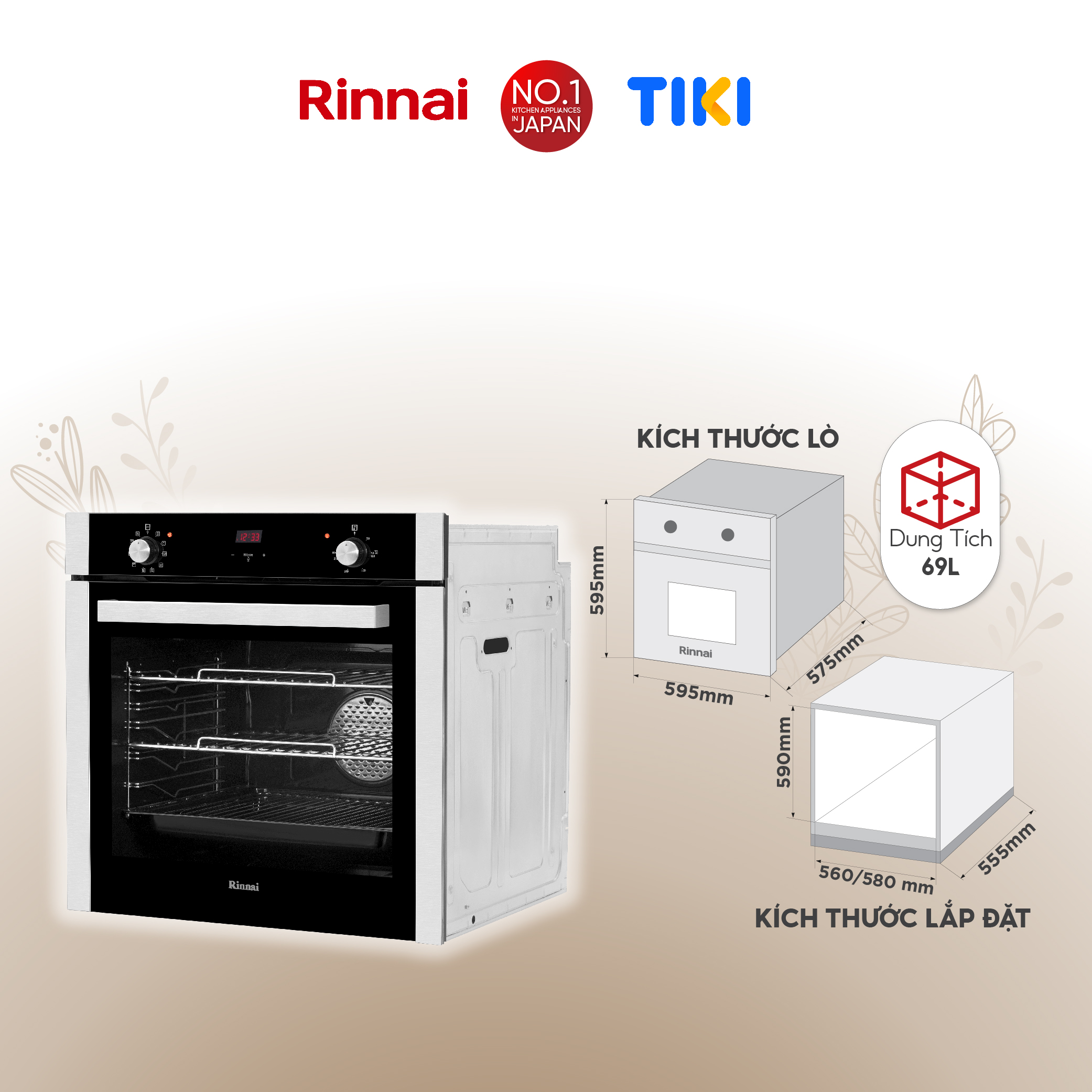 Kích thước lắp đặt: 560/580 x 555 x 590 (mm)
