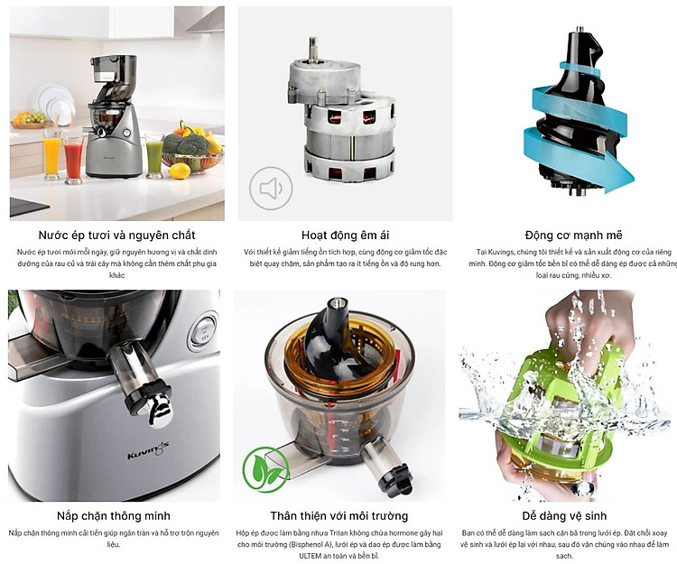 Máy Ép Chậm Kuvings C9000 [NS-924CBC2]Thông số kỹ thuậtCông suất: 240WTốc độ: 60 vòng / phútĐiện áp: AC220-240V, 50 / 60HzTrọng lượng: 8.7 kgsSử dụng tối đa: 30 phútVật liêu: Ultem, Tritan, ABS...