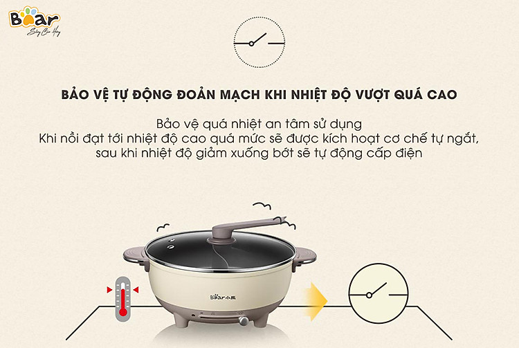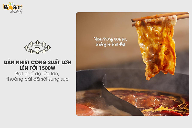 Nồi lẩu uyên ương Bear được trang bị công suất lên đến 1500W giúp làm nóng nhanh chóng, rút ngắn thời gian làm chín thức ăn. Bạn hãy tận hưởng bữa tiệc khôn gián đoạn với em nồi lẩu 2 ngăn chính hãng Bear công suất lớn nhé.