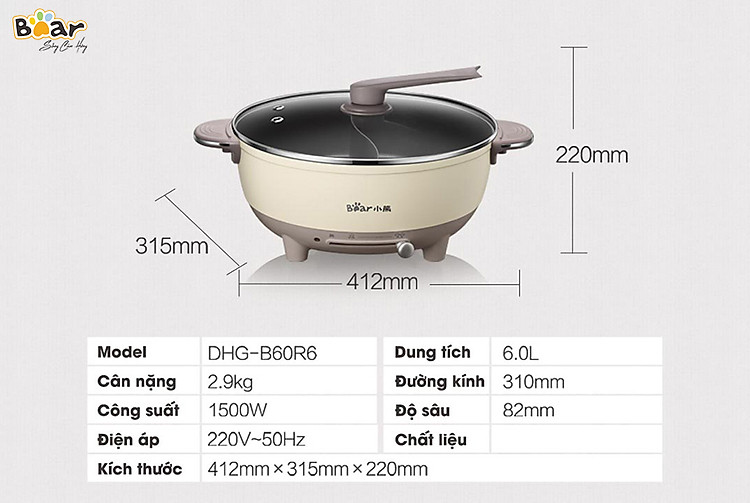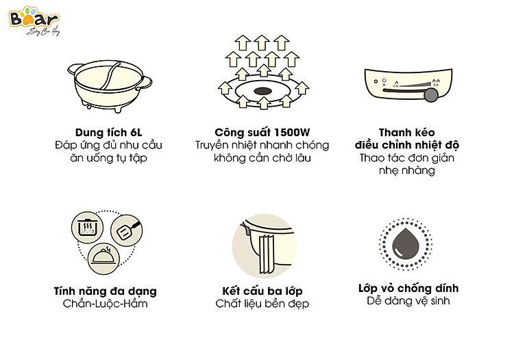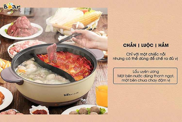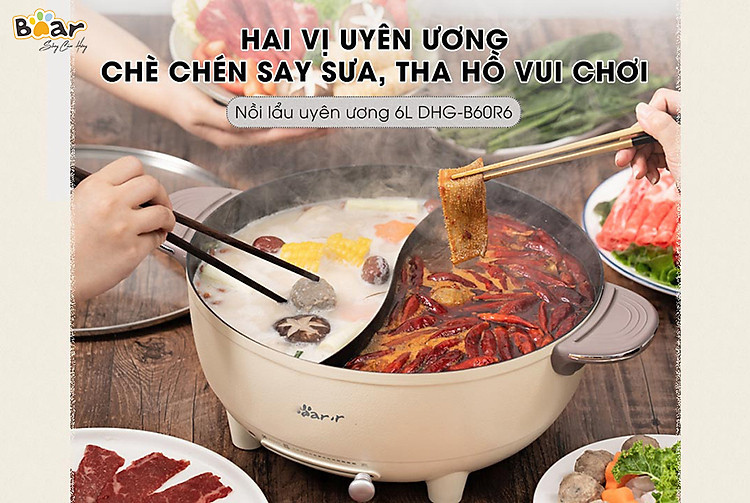 Bạn đang tìm kiếm một chiếc nồi lẩu đa năng với dung tích lớn, thiết kế thông minh và bền bỉ thì không thể bỏ qua chiếc nồi lẩu uyên ương Bear DHG-B06R6 với dung tích 6 lít phù hợp dùng cho gia đình, được Bear Việt Nam phân phối chính hãng ngay sau đây nhé.