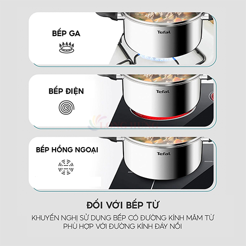 Tương thích với mọi loại bếp: Bao gồm bếp từ, bếp gas, bếp điện và bếp hồng ngoại.