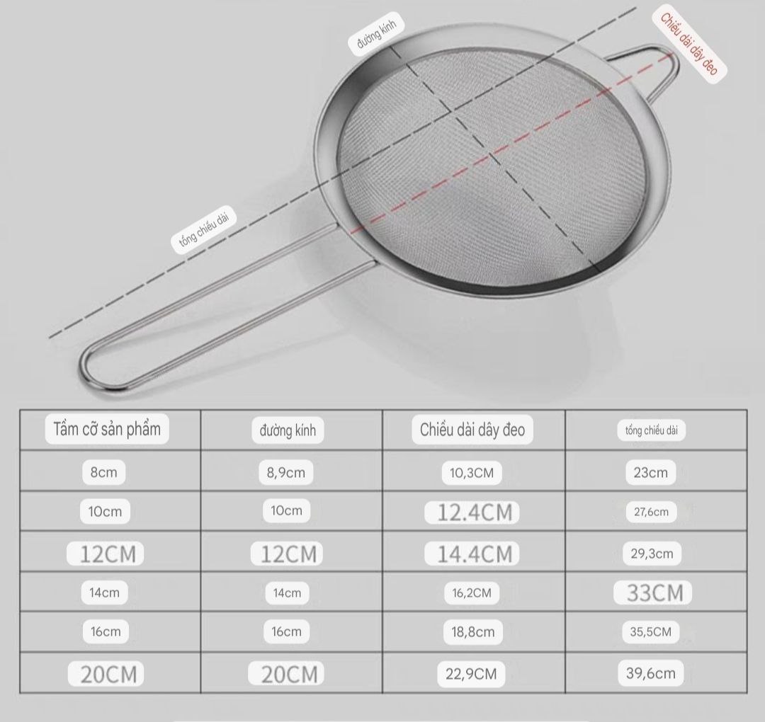 BỘ DỤNG CỤ VỚT VỢT LỌC LƯỚI INOX 304 CÓ NHIỀU SIZE 8,5 CM / 10CM / 12CM / 14CM / 16 / CM /20CM